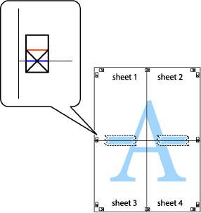 7. Положите край Sheet 1 и Sheet 2 сверху Sheet 3 и Sheet 4 и совместите метки пересечения, а затем временно соедините их вместе с обратной стороны липкой лентой.