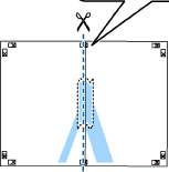 Разрежьте соединенные листы пополам вдоль красной горизонтальной линии, проходящей через метки для совмещения (в данном случае это линия над метками пересечения).
