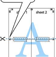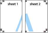 1. Подготовьте Sheet 1 и Sheet 2. Отрежьте поля Sheet 1 по синей вертикальной линии, проходящей через центр верхней и нижней метки пересечения.