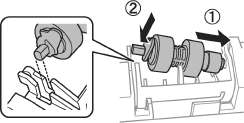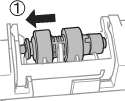 11. Передвиньте валов принтера в сторону рычажка, затем снимите их, вытащив вал из держателя.