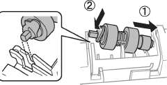 9. Передвиньте валов принтера в сторону рычажка, затем снимите их, вытащив вал из держателя.