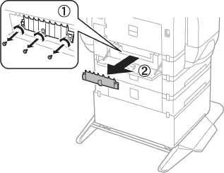 5. Выкрутите винты с помощью отвертки и снимите крышку с задней панели внутренней части принтера.