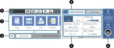 Указывает элементы, которые были настроены для принтера в качестве значков. Нажмите, чтобы проверить текущие настройки или получить доступ к каждому меню настроек.