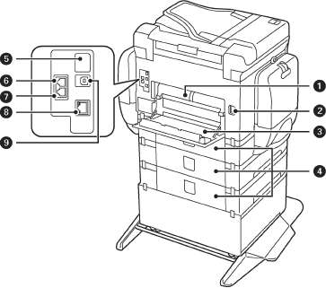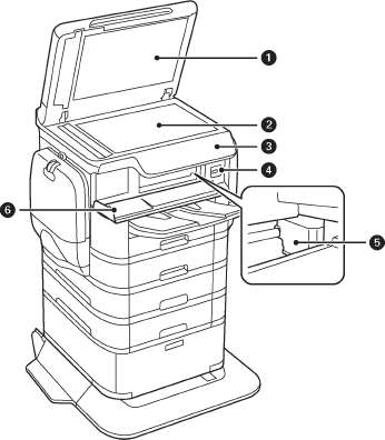 Открывать при замене контейнера для отработанных чернил или валов принтера, а также при удалении застрявшей бумаги.