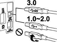 Обратите внимание на направление вставки при использовании кабеля USB 1.0-2.0, в противном случае принтер может оказаться поврежденным.