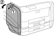 Здесь описывается, как заменить черный контейнер с чернилами. Чтобы заменить цветные контейнеры с чернилами, откройте емкость для чернил с другой стороны принтера. Методы замены не отличаются.
