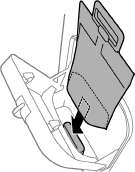 Если контейнер с чернилами имеет раскрывающееся основание, раскройте основание и поместите его на соответствующую часть в емкость для чернил. Некоторые контейнеры с чернилами не имеют раскрывающегося основания.