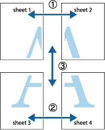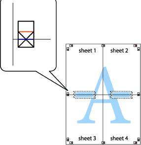 7. Положите край Sheet 1 и Sheet 2 сверху Sheet 3 и Sheet 4 и совместите метки пересечения, а затем временно соедините их вместе с обратной стороны липкой лентой.