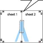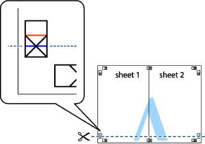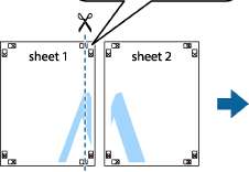 1. Подготовьте Sheet 1 и Sheet 2. Отрежьте поля Sheet 1 по синей вертикальной линии, проходящей через центр верхней и нижней метки пересечения.