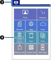 Запустите Epson iPrint с интеллектуального устройства и выберите элемент, который необходимо использовать с начального экрана.