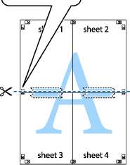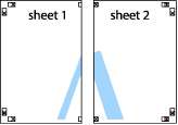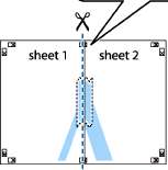 1. Подготовьте Sheet 1 и Sheet 2. Отрежьте поля Sheet 1 по синей вертикальной линии, проходящей через центр верхней и нижней метки пересечения.