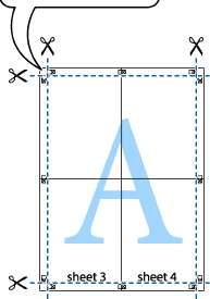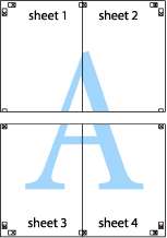 Ниже описан пример создания плаката с параметром Плакат 2x2 и значением Метки перекрытия и выравнивания для Печать направляющих.