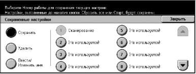Если после сохранения работы в режиме Сохраненные настройки вы измените настройки по умолчанию в режиме Системные настройки или внесете какие-либо изменения в настройки Листа передачи работ, Шаблона работ, Книги адресов, Комментария и т. д., эти настройки в сохраненных работах также изменяться.