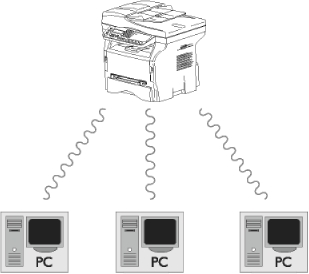 Если у Вас есть адаптер WLAN, то Вы можете подключить аппарат как сетевой принтер к радиосети. Такой вариант возможен только в том случае, если адаптер является оригинальным (его можно заказать через службу заказов).