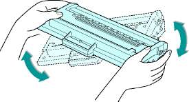 3 Осторожно потрясите из стороны в сторону пять или шесть раз, чтобы перераспределить тонер внутри.