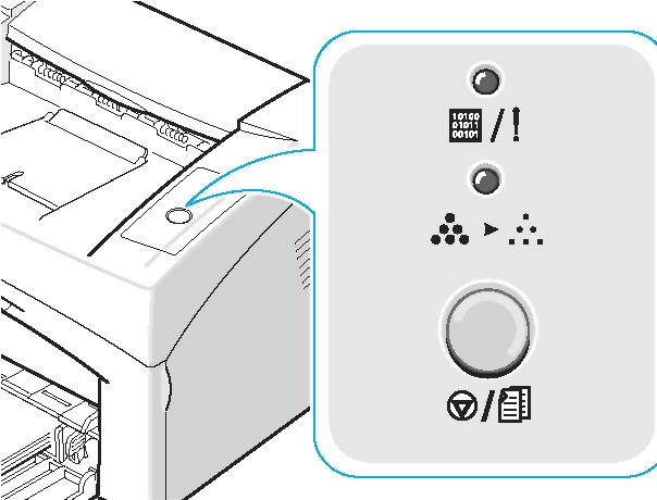 При возникновении ошибки в работе, на принтере загорятся индикаторы и будет выведено соответствующее сообщение.