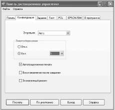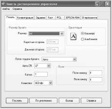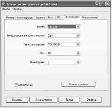 На этой вкладке можно установить различные настройки эмуляции EPSON/IBM.
