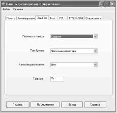 3 Окно панели дистанционного управления обеспечивает доступ к информации, необходимой при работе с принтером. При необходимости откройте другие вкладки окна и настройте другие параметры.