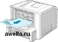 Если задний выходной лоток открыт, отпечатанные страницы выводятся на него. Бумага выходит из принтера лицевой стороной вверх, и Вам необходимо забирать каждый лист из заднего выходного лотка.