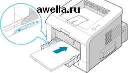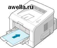 Если Вы выбрали лоток 1(ручная подача) в поле Источник при смене настроек принтера, Вы можете вручную загрузить лист материала для печати в лоток 1. Ручную подачу бумаги можно использовать в том случае, если Вы хотите проверить качество каждой напечатанной страницы.