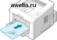 Лоток 1 позволяет подавать различные размеры и типы бумаги, такие как прозрачная пленка, карточки и конверты. Вам может потребоваться использовать лоток 1 для печати отдельных страниц на готовых бланках, цветных разделительных листах или других специальных материалах, которые Вы обычно в лотке не держите. Можно одновременно загрузить в лоток около 50 листов обычной бумаги, 5 конвертов, 5 прозрачных пленок, 5 листов картона или 5 наклеек.