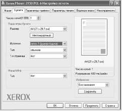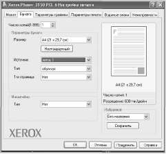 5 Для печати документа укажите в окне приложения тип и источник бумаги.