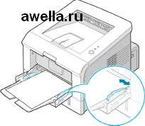 2 Разверните дополнительную подставку, для того чтобы лоток вмещал бумагу более длинного размера.