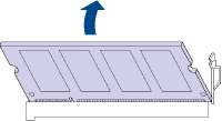 Чтобы снять блок памяти, нажмите две пластинки снаружи на слоте, при этом модуль памяти выйдет из слота.