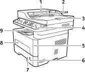 Стоп: нажатие кнопки Стоп останавливает выполнение текущего задания. Нажатие кнопки Стоп также выводит аппарат из режима меню. Если пользователь вошел в систему, нажатие кнопки Стоп выведет на экран параметр Выход из системы.