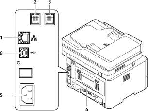 4. Для отправки факсов подключите телефонный кабель к разъему LINE. 5. Нажмите кнопку питания на панели управления.