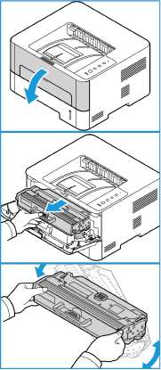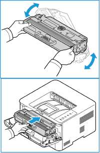 3. Медленно встряхните картридж 5-6 раз, чтобы добиться ровного распределения тонера внутри картриджа.