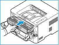 4. Медленно вставьте тонер-картридж в принтер до щелчка.