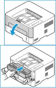 Следуйте нижеприведенным инструкциям, чтобы перераспределить тонер и таким образом временно повысить качество печати.