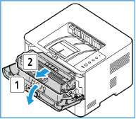 2. Вытащите картридж, держа его за рукоятку с цветным ярлыком.