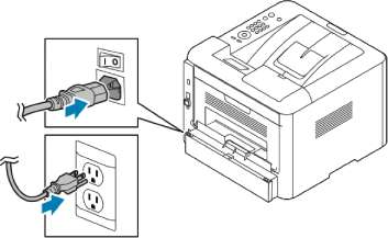 1. Подсоедините к принтеру шнур питания и вставьте вилку шнура в электророзетку.
