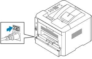 Если выключатель питания находится в положении «Вкл», но принтер не начинает работу, это означает, что принтер был выключен с панели управления. Чтобы включить принтер, переведите выключатель питания в положение Выкл, азатем в положение Вкл.
