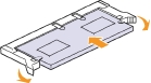 Сохраняя ориентацию модуля памяти, вставьте его в разъем до упора. Убедитесь, что защелки разъема вошли в пазы, находящиеся на обеих сторонах модуля памяти.