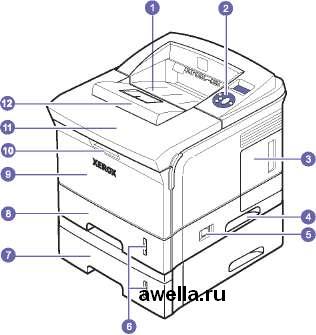 На рисунке показан принтер Phaser 3600 и все его компоненты.