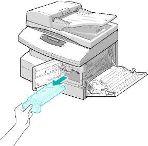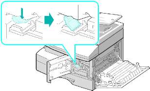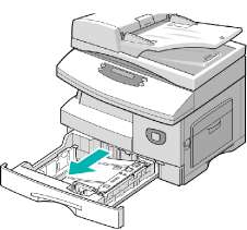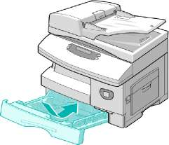 Откройте лоток для бумаги и уберите из него упаковочный материал.