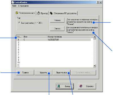 Программа ControlCentre позволяет вам задавать номер факса аппарата и работать с записями в телефонной книге. Кроме того, ControlCentre используется для обновления встроенного программного обеспечения аппарата.