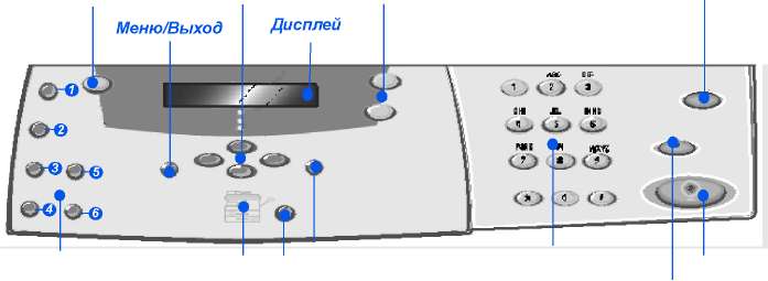 Выберите для активации режима факса. При нажатии кнопки Факс она подсвечивается (только для модели "4 в 1").