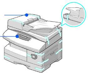 Стекло сканирования из автоподатчика - это узкая полоска стекла, расположенная слева от стекла экспонирования и предназначенная для сканирования оригиналов, загруженных в податчик оригиналов. Это стекло также необходимо чистить.