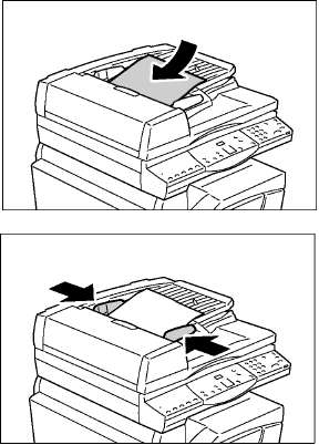 Далее показано, как размещать оригиналы на стекле экспонирования или в податчике оригиналов при изготовлении 2-сторонних копий.