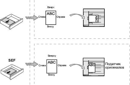 В случае, если оригинал имеет формат и ориентацию 11 x 17" SEF, 8,5 x 14" SEF, 8,5 x 13,4" SEF, 8,5 x 13" SEF, 8,5 x 11" SEF, 5,5 x 8,5" SEF, A3 SEF, B4 SEF, A4 SEF, B5 SEF, A5 SEF, или 8K SEF