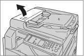1. Поднимите защелку верхней крышки податчика оригиналов, чтобы крышка полностью открылась.