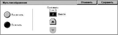 Позволяет копировать документы в разном виде. Например, можно получать увеличенные или уменьшенные до определенного размера изображения или размещать от двух до четырех разных документов на одном листе бумаги.