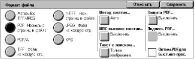 • Формат сохраненного документа: A4, B4, A3, Letter, Legal.