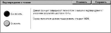 Этот режим позволяет распечатывать отчет о результатах передачи и получать уведомление по электронной почте о том, что отправленный вами Интернет-факс был открыт получателем (MDN - Mail Delivery Notification). Для получения дополнительной информации обратитесь к главе "Настройки" руководства системного администратора. Отчеты о получении и прочтении Интернет-факса используют в тех случаях, когда удаленная машина поддерживает эти функции.