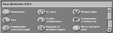 2. Если необходимо, нажмите кнопку <Статус работы> на панели управления. Откроется экран "Статус работы". Чтобы выйти из окна "Статус работы", нажмите кнопку <Режимы>.
