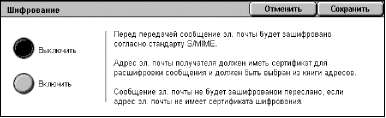 Чтобы использовать данную опцию, необходимо указать адрес электронной почты, связанный с сертификатом, который поддерживает шифрование. Для получения дополнительной информации обратитесь к главе "Безопасность" руководства системного администратора.